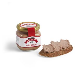 Foie gras d’ànec desvenat, salpebrat amb figa confitada col·locat en capes i cuit en una terrina al bany maria. Producte cuinat amb la mateixa recepta des de l’any 1982 quan varem inciar la nostra activitat